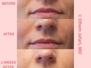 - Vertical lip lines: Facial wrinkles above and around the lips can begin to appear over time due to ordinary lip muscle movement. However, environmental factors such as exposure to sunlight, smoking and stress can also contribute to how the area around our lips ages and the formation of vertical lip lines. The good news is that Juveerm dermal filler can soften those with typically just one treatment.