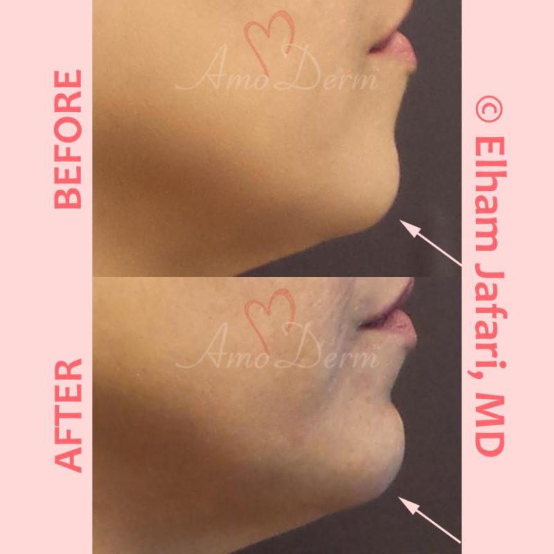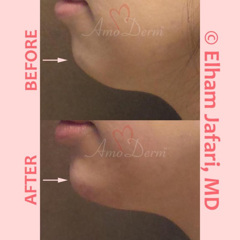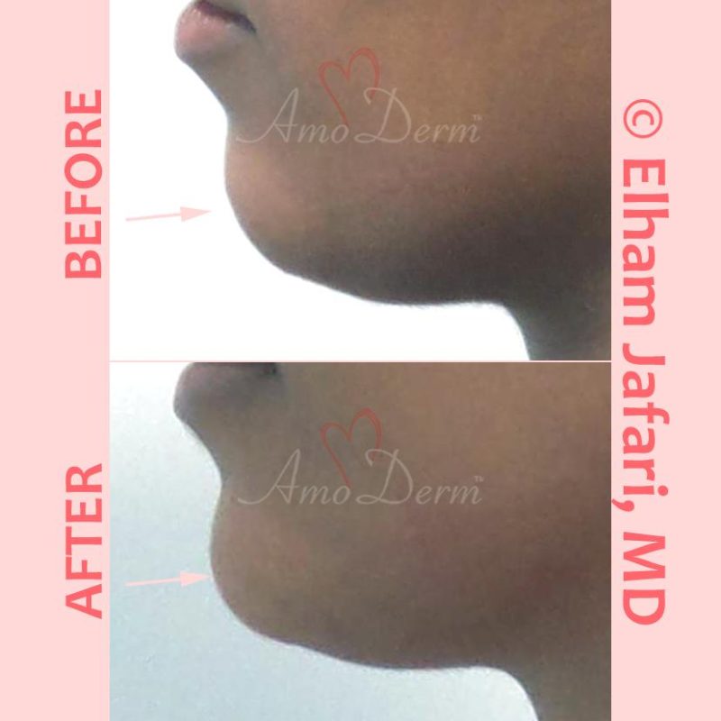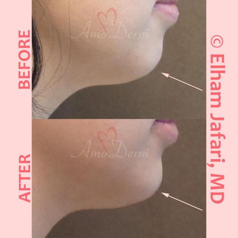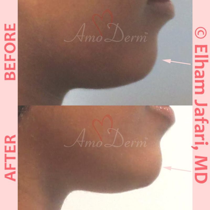At Amoderm, Dr. Jafari specializes in liquid facelift and various nonsurgical cosmetic treatments. One of the most popular treatments offered by Dr. Jafari is non-surgical chin enhancement. The procedure is done to reshape and sculpt the chin and to correct weak and poorly-defined and under-projected chin and to achieve a more beautiful and balanced look and contour without surgery or downtime.